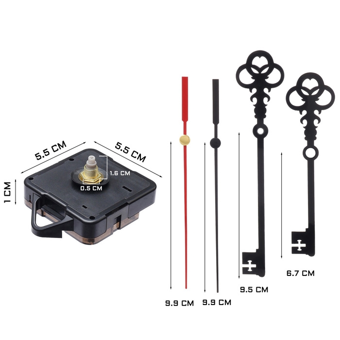 Часовой механизм «Соломон-44. Ключик», плавный ход, шток 16 мм, стрелки 67/95/99 мм