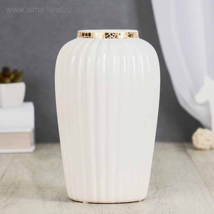 Ваза керамика настольная "Геометрия люкс" горлышко, 8х23 см, белый
