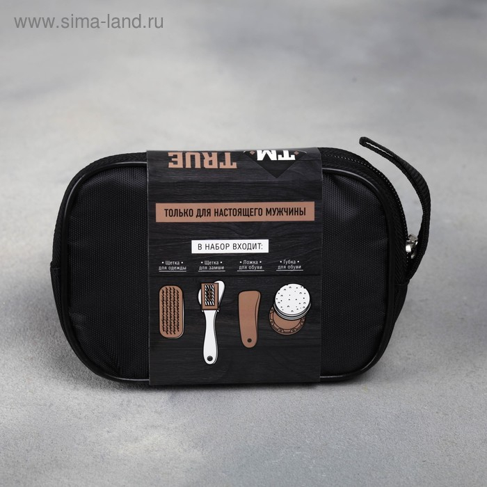 Набор дорожный для обуви «True man»: щётка 2 шт., губка, лопатка