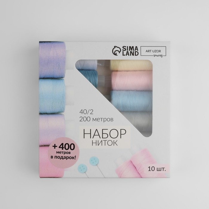 Набор ниток «Пастель», 40/2, 200 м, 10 шт, цвет разноцветный