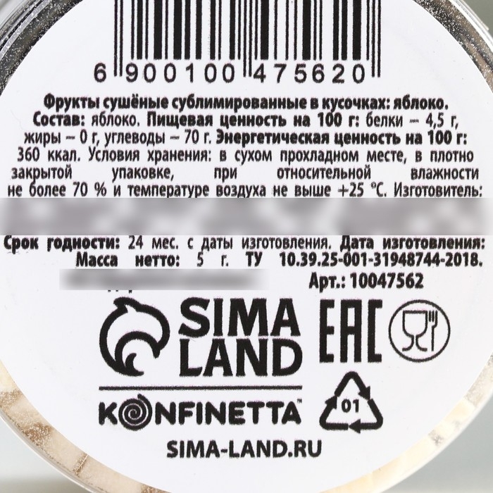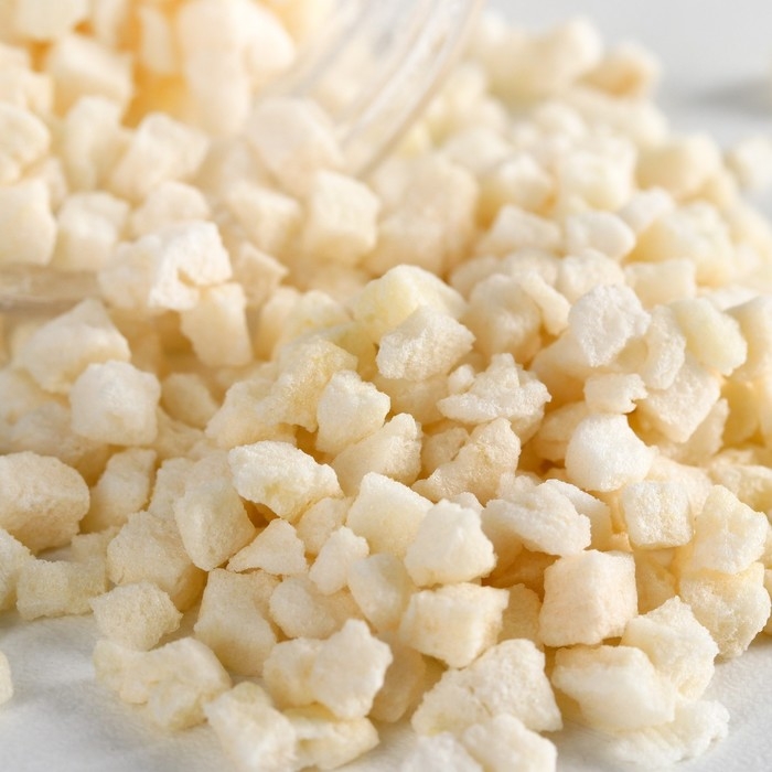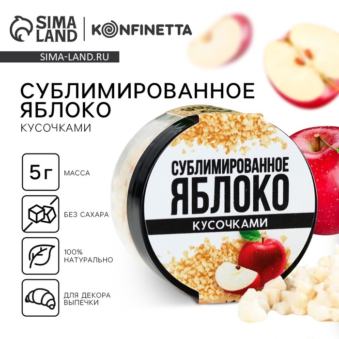 Сублимированное яблоко кусочками - это необычный декор, который изготовлен при помощи инновационного метода, при котором не используются консерванты. Процесс сублимации включает в себя шоковую заморозку с последующей вакуумной сушкой в специальной камере, которая не нарушает первоначальную структуру ягоды и сохраняет до 96% витаминов и микроэлементов.