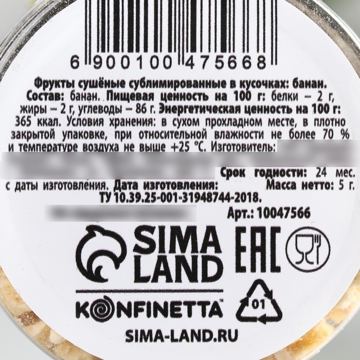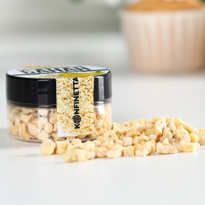 Сублимированный банан кусочками - это необычный декор, который изготовлен при помощи инновационного метода, при котором не используются консерванты. Процесс сублимации включает в себя шоковую заморозку с последующей вакуумной сушкой в специальной камере, которая не нарушает первоначальную структуру ягоды и сохраняет до 96% витаминов и микроэлементов.
