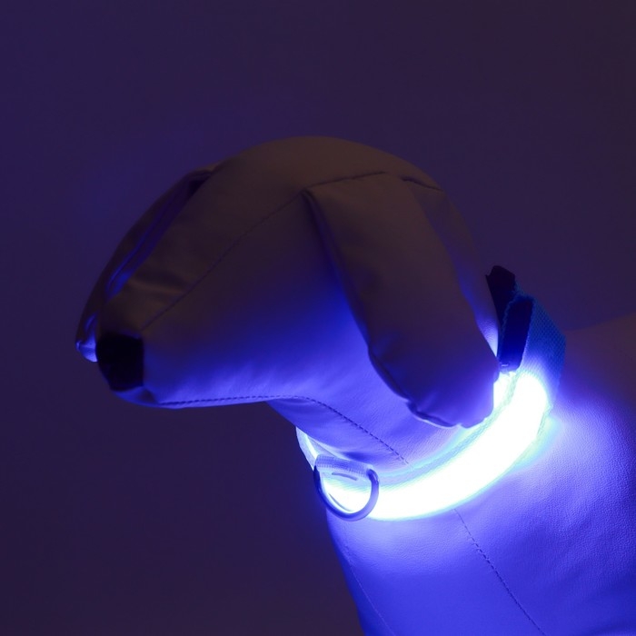 Ошейник с подсветкой, зарядка от USB, размер S, ОШ 34-41 см, 3 режима, голубой