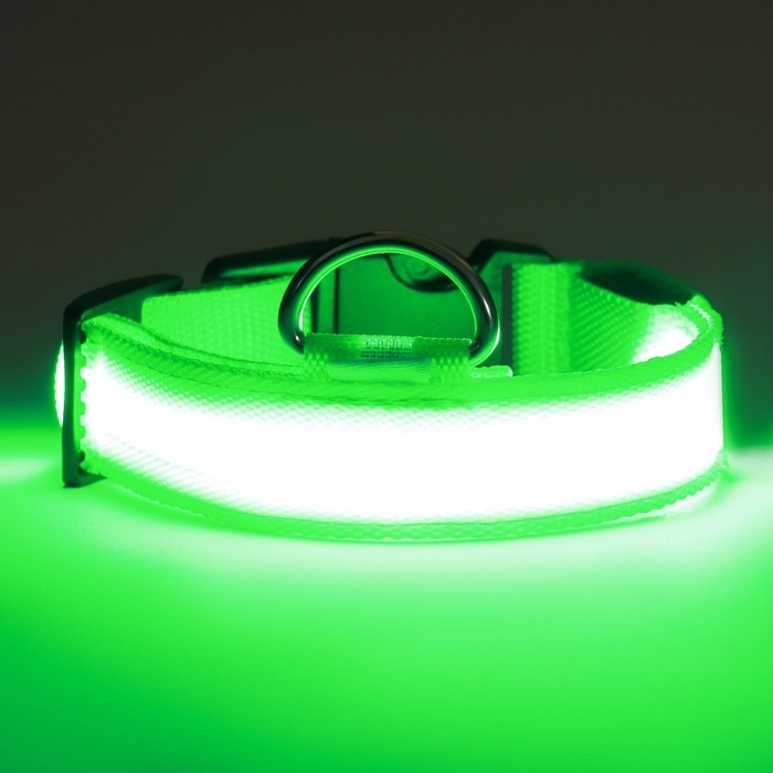 Ошейник с подсветкой размер L, ОШ 45-52 х 2,5 см, 3 режима свечения зелёный