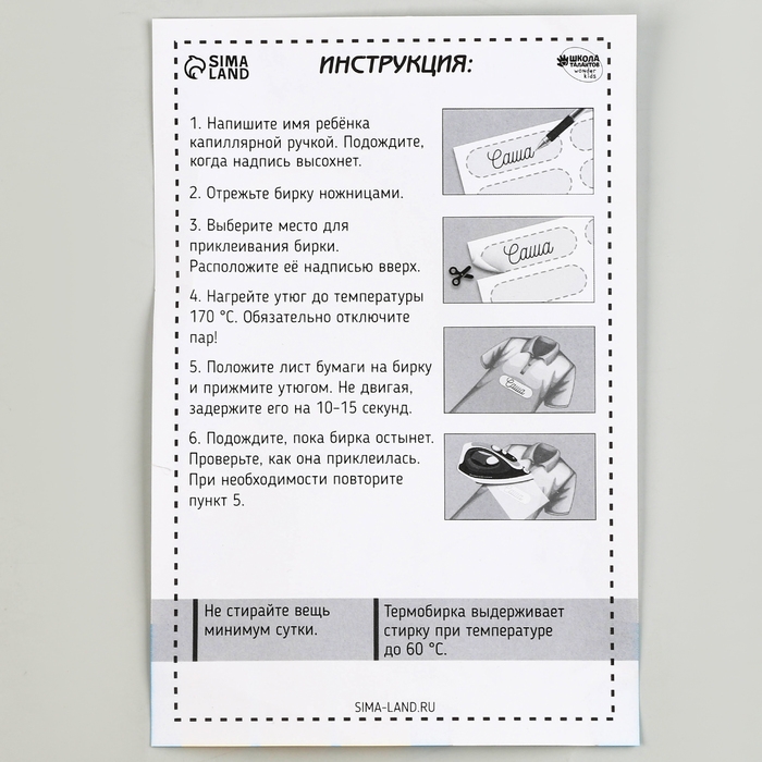Не стирайте вещь минимум сутки после приклеивания бирки.