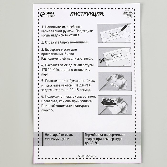 Не стирайте вещь минимум сутки после приклеивания бирки.
