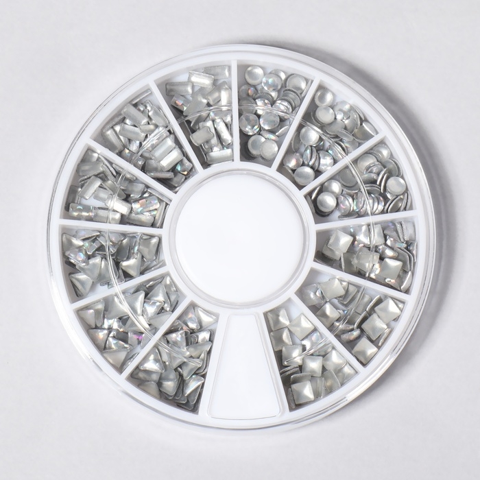 Заклёпки для ногтей, объёмные, 12 ячеек, цвет серебристый голографический