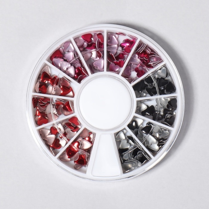 Заклёпки для ногтей, объёмные, 12 ячеек, цвет чёрный/розовый/красный