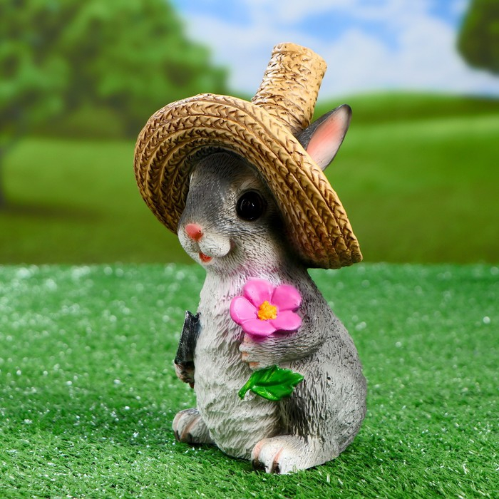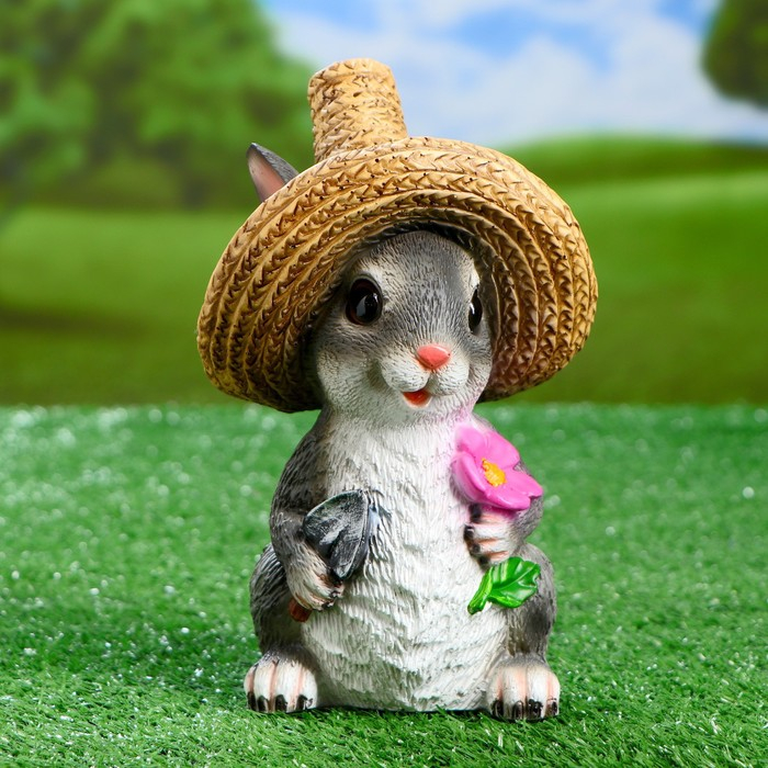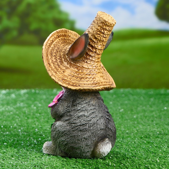 Садовая фигура "Зайка в соломенной шляпе с цветочком" 12х13х22см