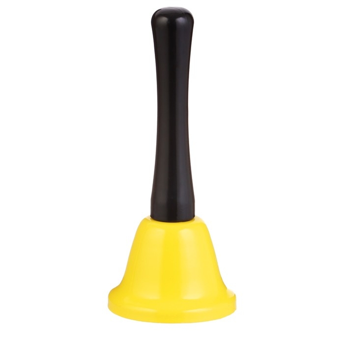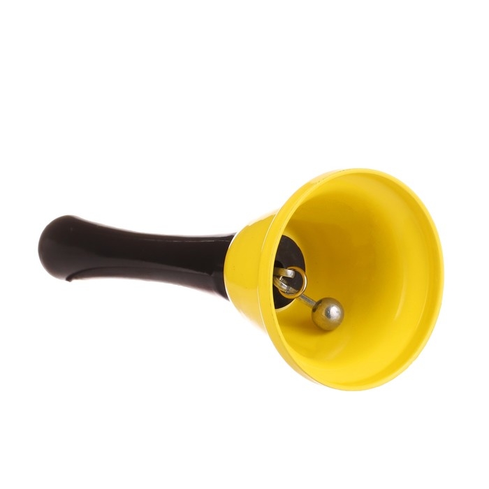 Яркий и стильный, изготовленный из тонкого металла он обеспечивает чистый и звонкий звук, а ручка помогает удерживать изделие. Колокольчик имеет жёлтый цвет, который привлекает внимание, компактный и удобный в использовании.