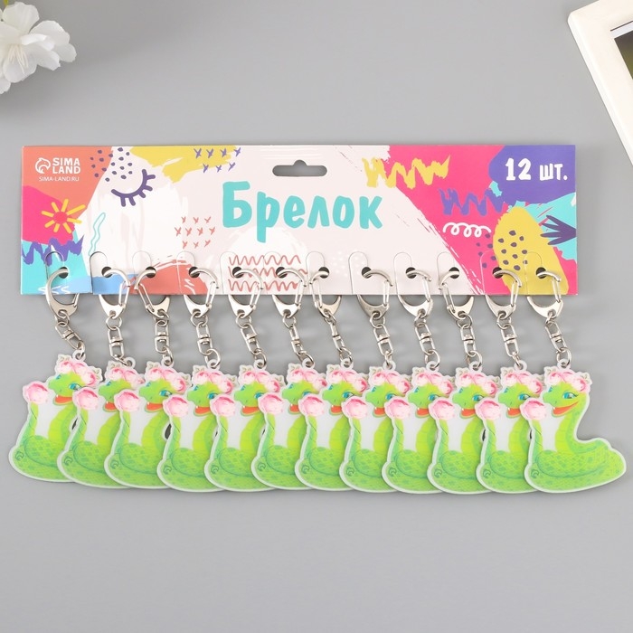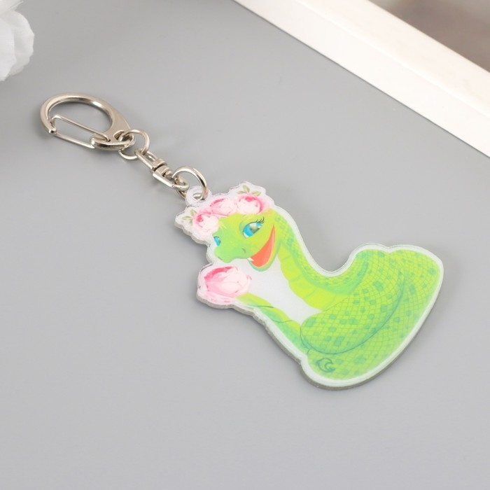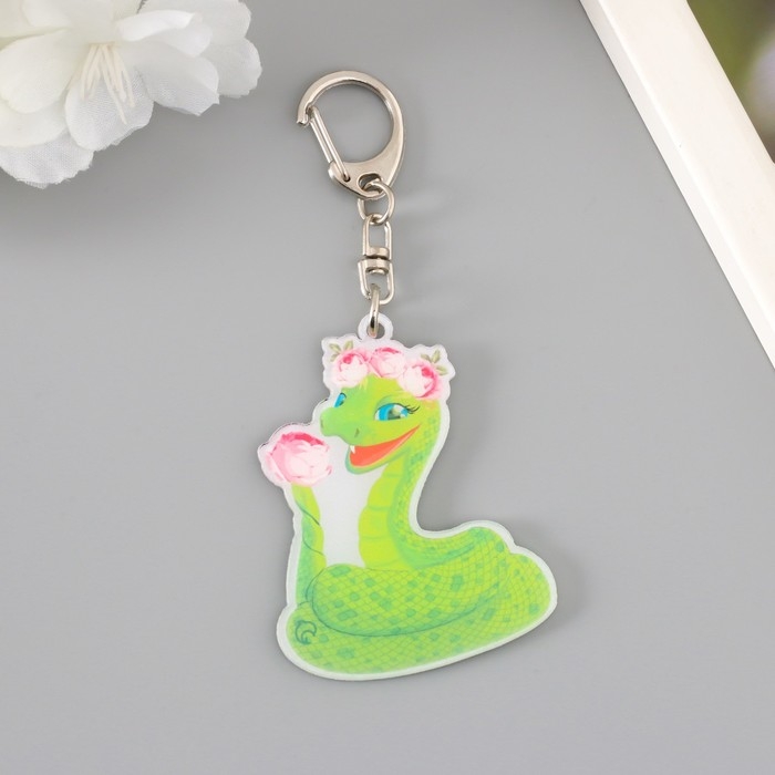 Брелок акрил "Змейка с розовыми пионами" 6х4,7 см