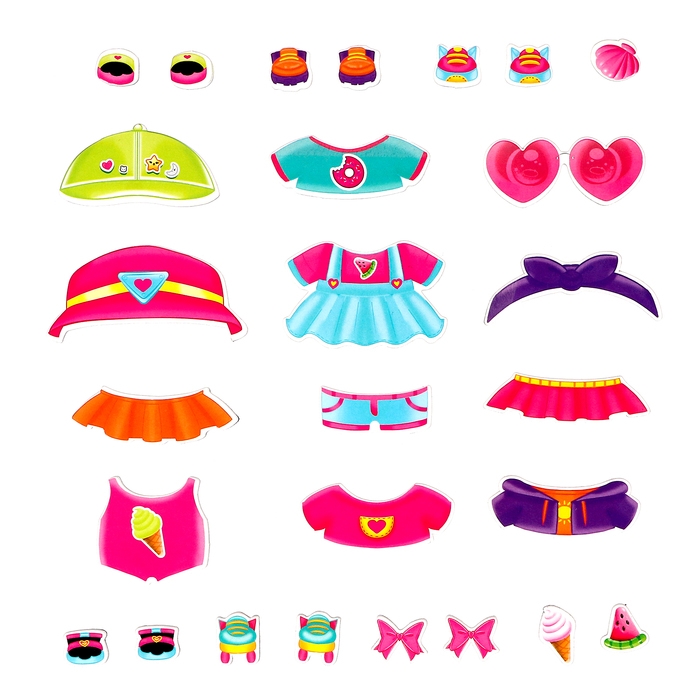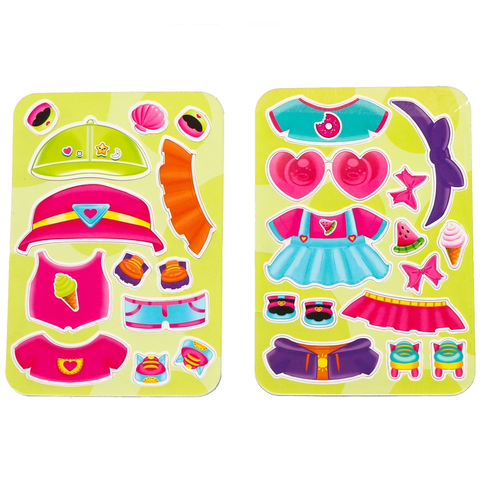 - 27 магнитных элементов: одежда, обувь и аксессуары.