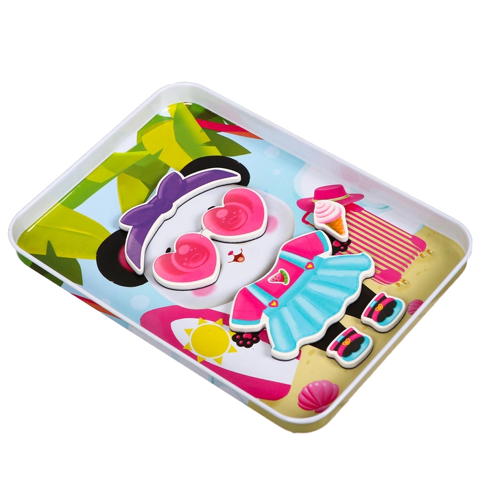 Ваша принцесса любит модничать? Тогда этот набор станет эффектным подарком для неё! Магнитный набор «Жаркие каникулы» позволит менять одежду пандочке и создавать разные образы. С ним ребёнок не ограничен в выборе стиля и цветовой гаммы — в каждом из 5 образов можно легко комбинировать и менять одежду между собой.