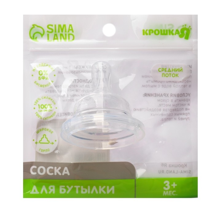 Соска на бутылочку, антиколиковая, от 3 мес., Крошка Я, широкое горло, средний поток, Ø50 мм.