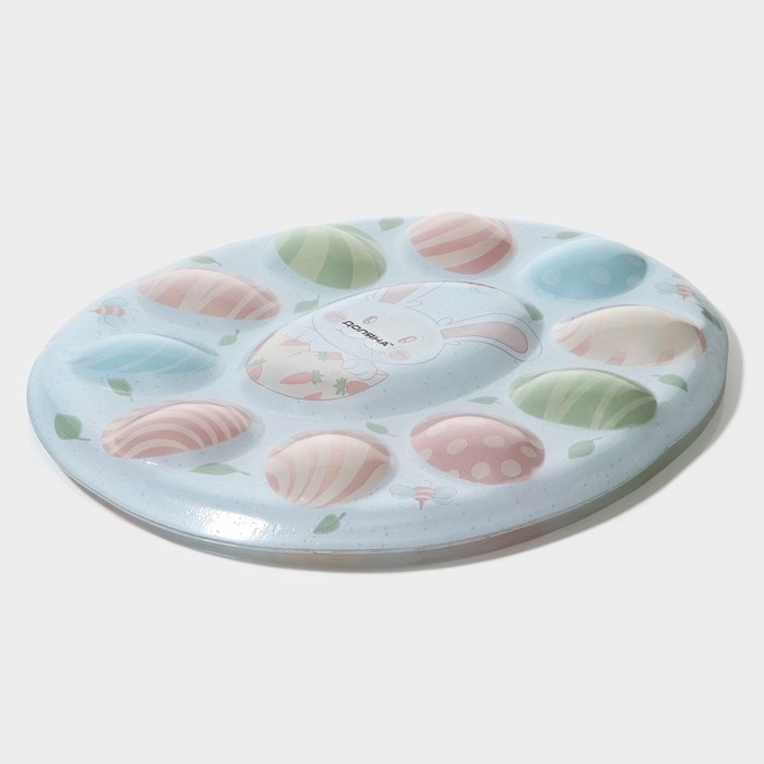 Подставка стеклянная для яиц Доляна «Зайка», 24×20,6 см, 10 ячеек, цвет голубой