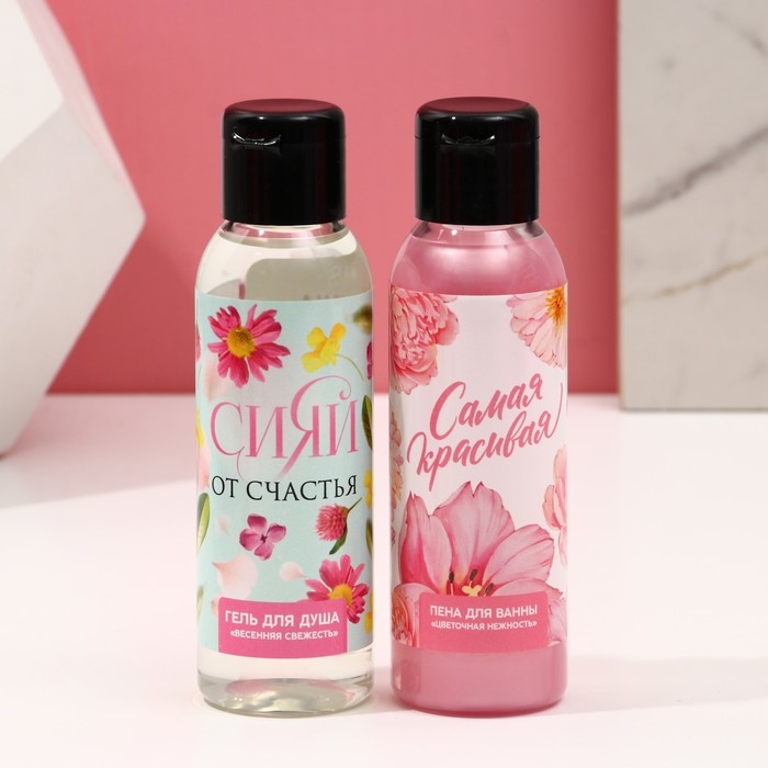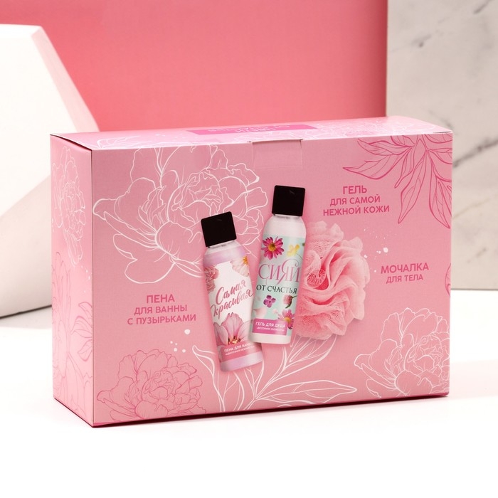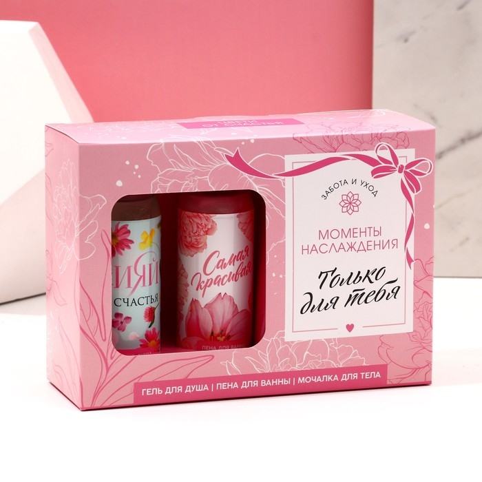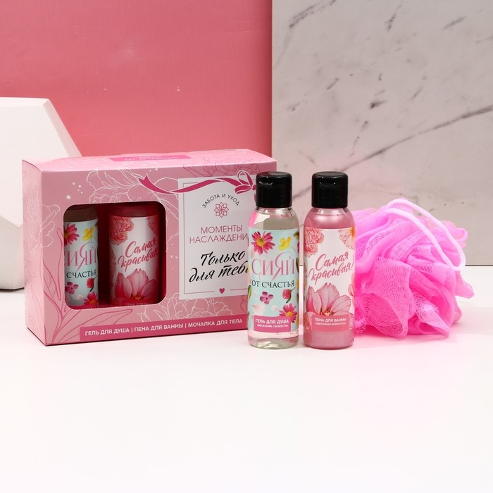 Подарочный набор косметики «Только для тебя», гель для душа 100 мл, пена для ванны 100 мл, мочалка, ЧИСТОЕ СЧАСТЬЕ