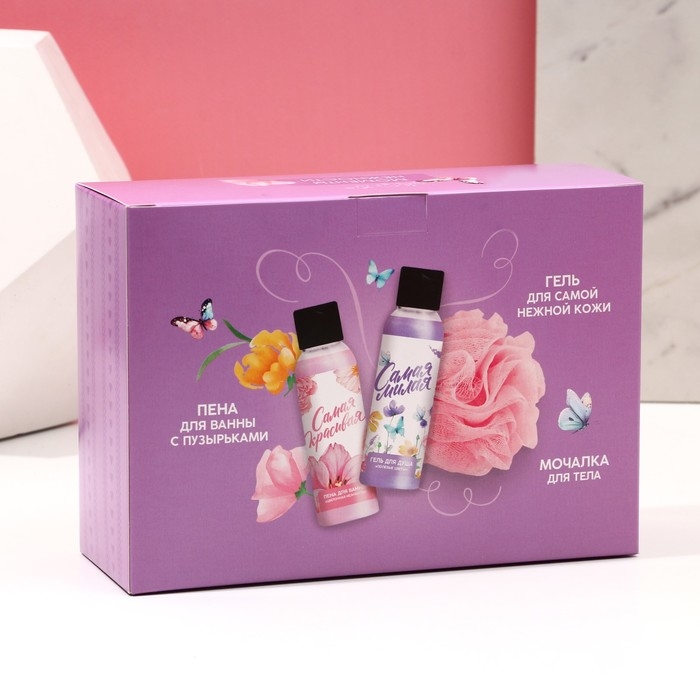 Подарочный набор косметики «Красота в тебе», гель для душа 100 мл, пена для ванны 100 мл, мочалка, ЧИСТОЕ СЧАСТЬЕ