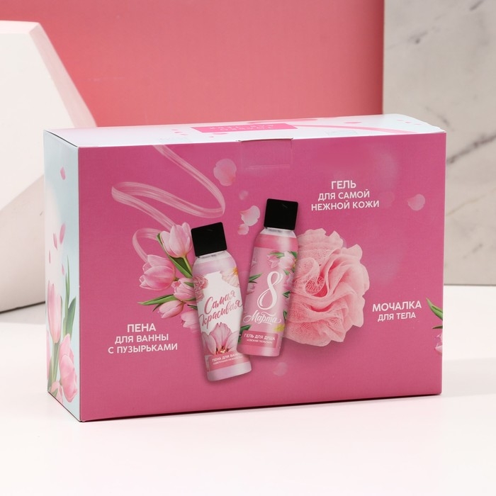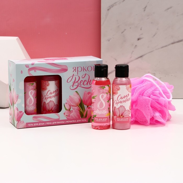 Подарочный набор косметики «Яркой весны!», гель для душа 100 мл, пена для ванны 100 мл, мочалка, ЧИСТОЕ СЧАСТЬЕ