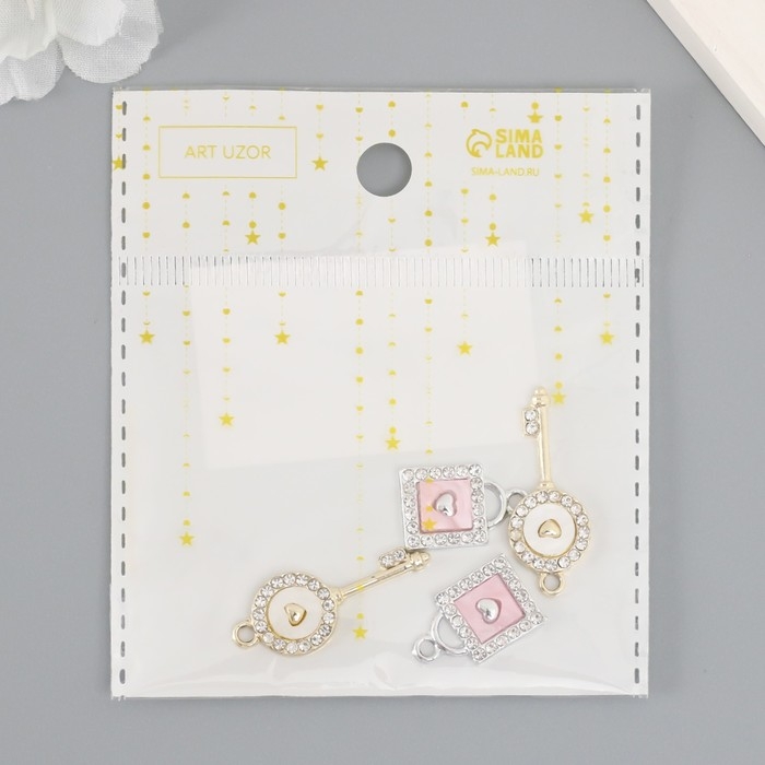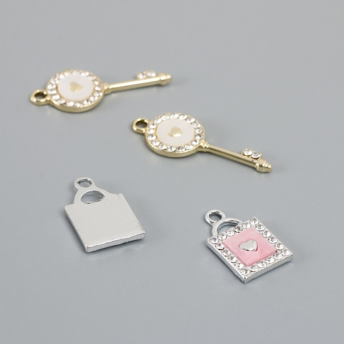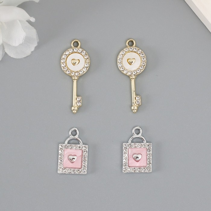 Декор для творчества металл, стразы "Ключик и замочек с сердцем" набор 2 шт 2,2х1,2 см