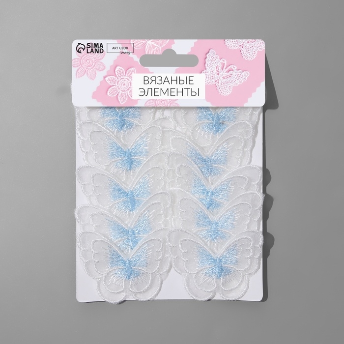 Вязаные элементы «Бабочки двойные», 5 × 4 см, 10 шт, цвет голубой/белый