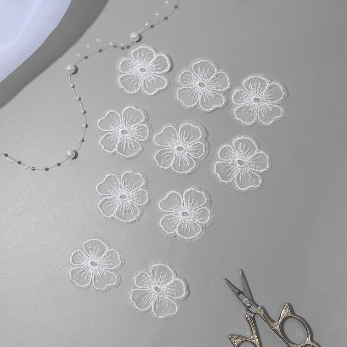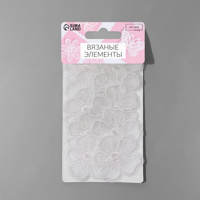 Вязаные элементы «Цветки», 4,2 × 4 см, 10 шт, цвет белый/хамелеон