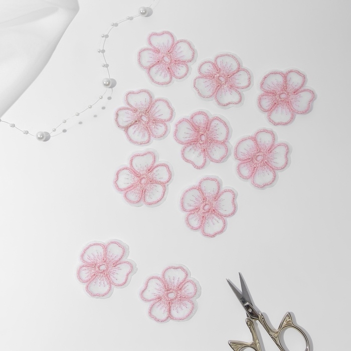 Вязаные элементы «Цветки», 4,2 × 4 см, 10 шт, цвет розовый/хамелеон