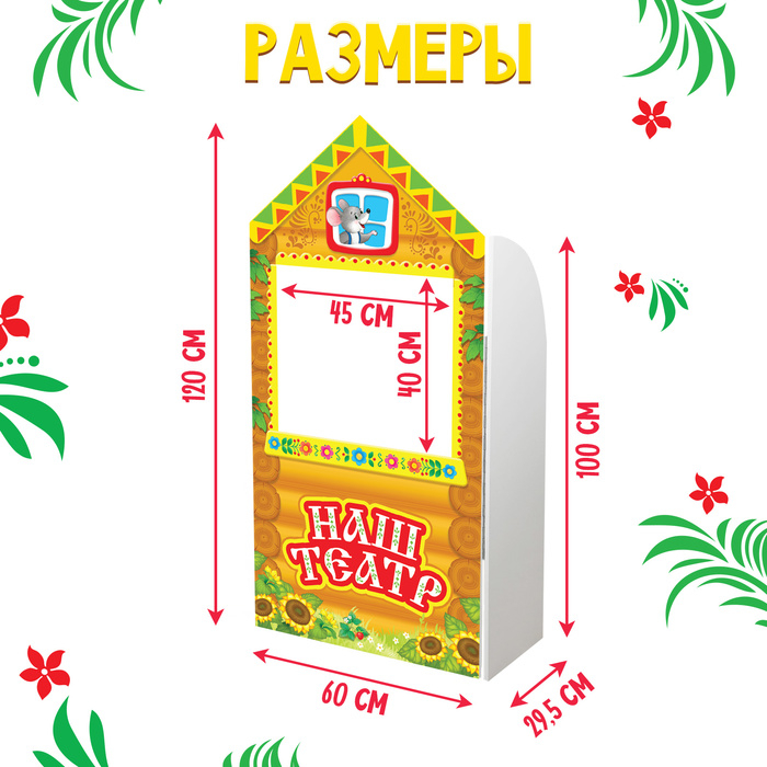 Ширма состоит из двух частей, которые легко соединяются между собой. Игрушка подходит для детей от 3 лет.