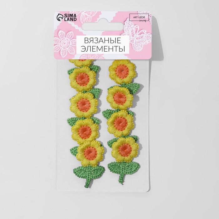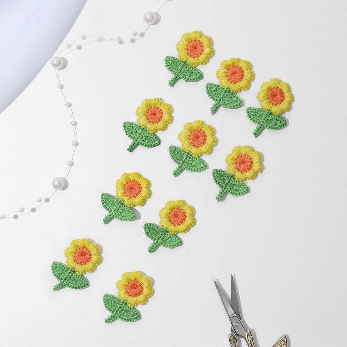 Вязаные элементы «Цветочки», 2,5 × 3,5 см, 10 шт, цвет жёлтый/зелёный