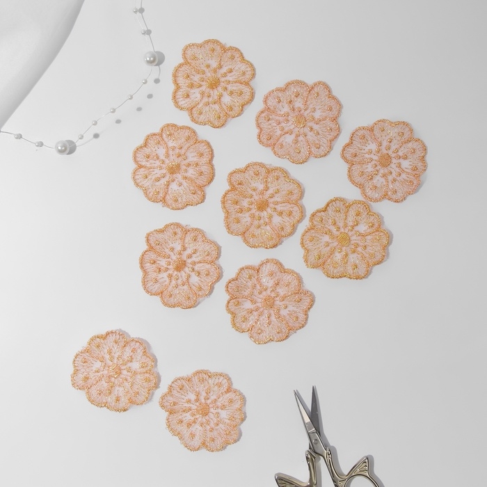 Вязаные элементы «Цветки», 4,5 × 4,5 см, 10 шт, цвет персиково-розовый/хамелеон