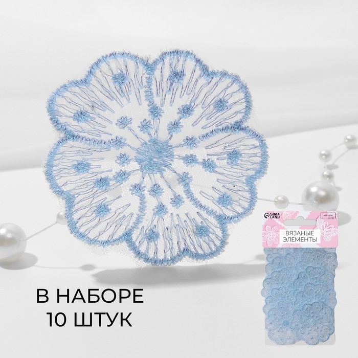 Вязаные элементы «Цветки», 4,5 × 4,5 см, 10 шт, цвет голубой/хамелеон