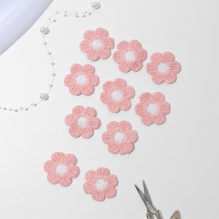 Вязаные элементы «Ромашки», 3,7 × 3,7 см, 10 шт, цвет розовый/белый