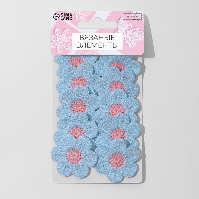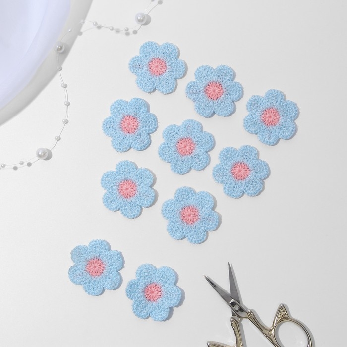 Вязаные элементы «Ромашки», 3,7 × 3,7 см, 10 шт, цвет голубой/розовый