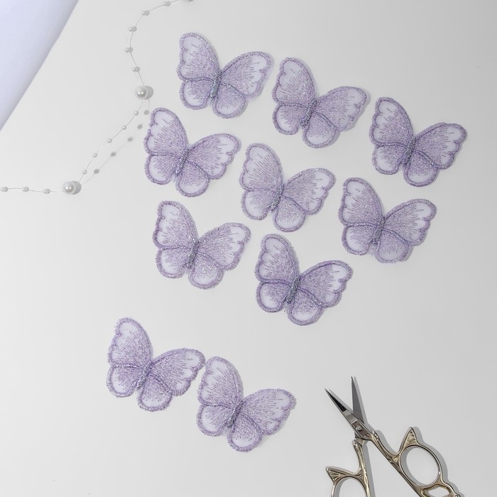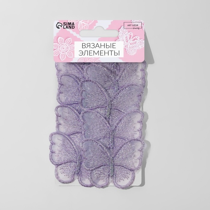 Вязаные элементы «Бабочки», 5,5 × 4 см, 10 шт, цвет сиреневый/хамелеон