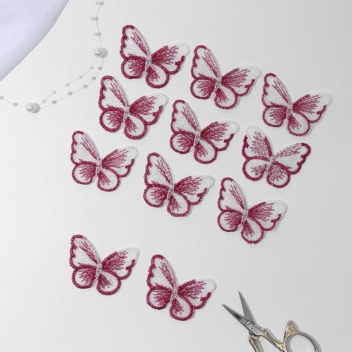 Вязаные элементы «Бабочки», 5,5 × 4 см, 10 шт, цвет фуксия/белый/хамелеон