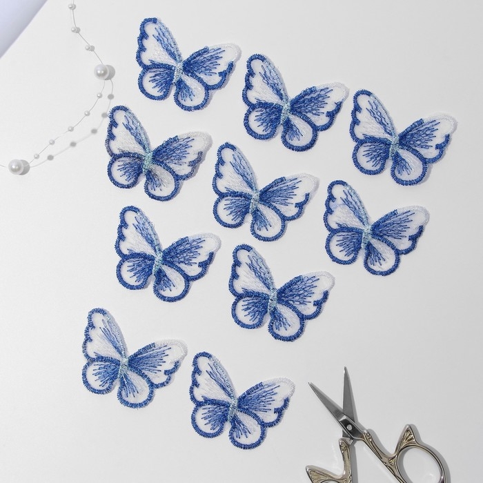 Вязаные элементы «Бабочки», 5,5 × 4 см, 10 шт, цвет синий/белый/хамелеон