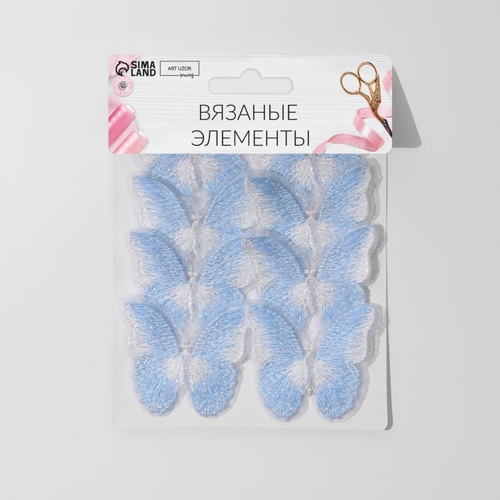 Вязаные элементы «Бабочки двухцветные», 5 × 4 см, 10 шт, цвет голубой/белый