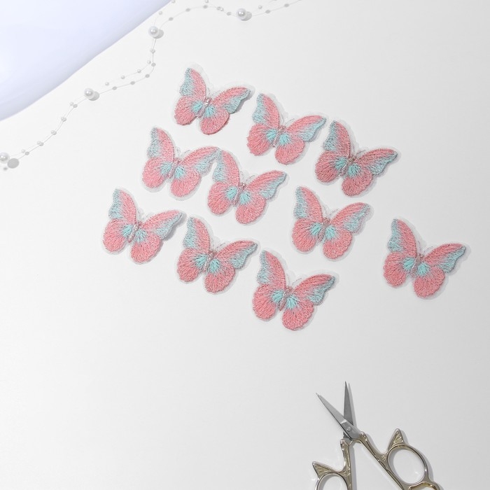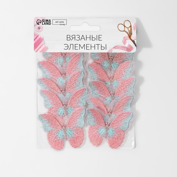 Вязаные элементы «Бабочки двухцветные», 5 × 4 см, 10 шт, цвет розовый/белый