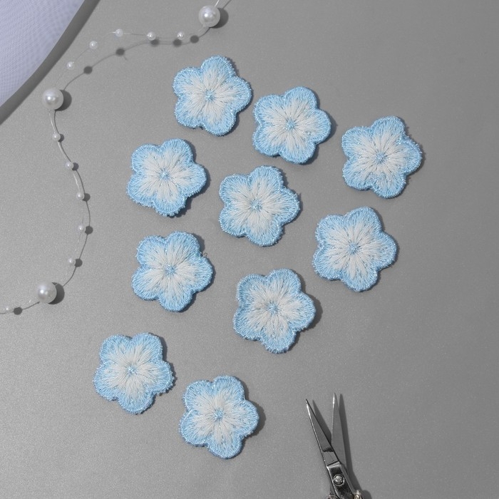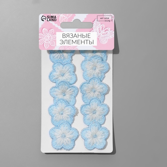 Вязаные элементы «Цветочки», 2,8 × 2,8 см, 10 шт, цвет голубой/белый