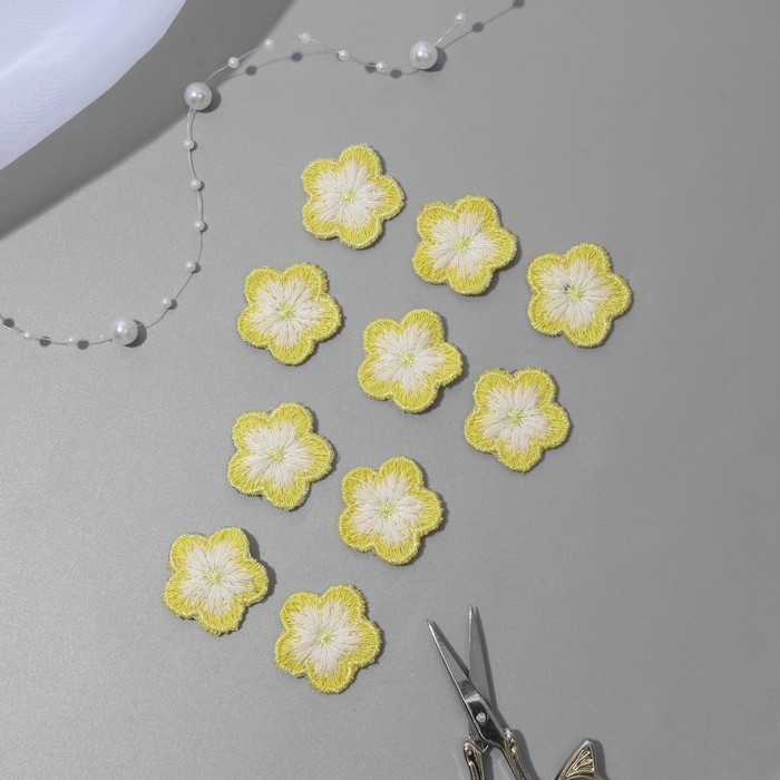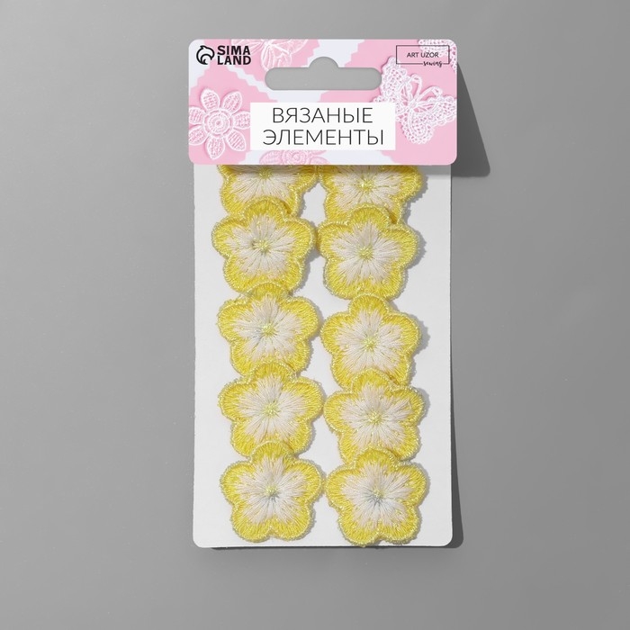 Вязаные элементы «Цветочки», 2,8 × 2,8 см, 10 шт, цвет жёлтый/белый