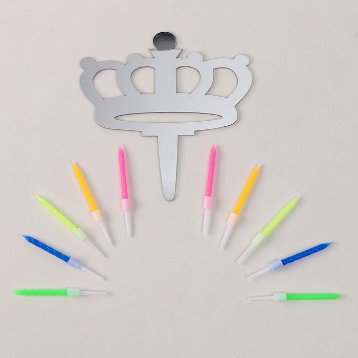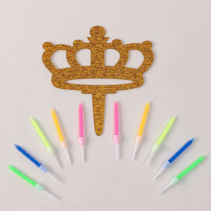 Набор для украшения Топпер «Корона», набор свечей 10 шт., цвет МИКС