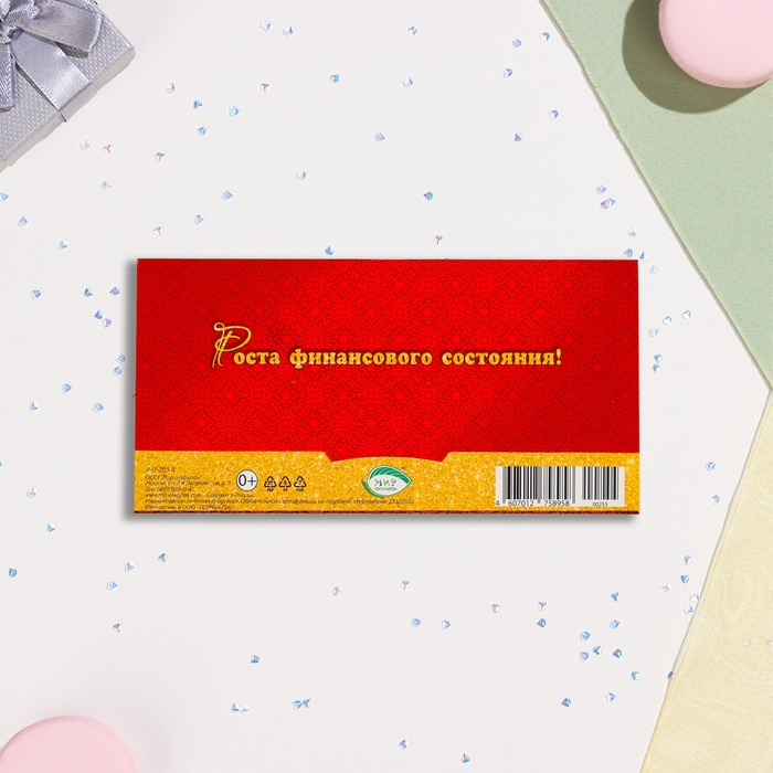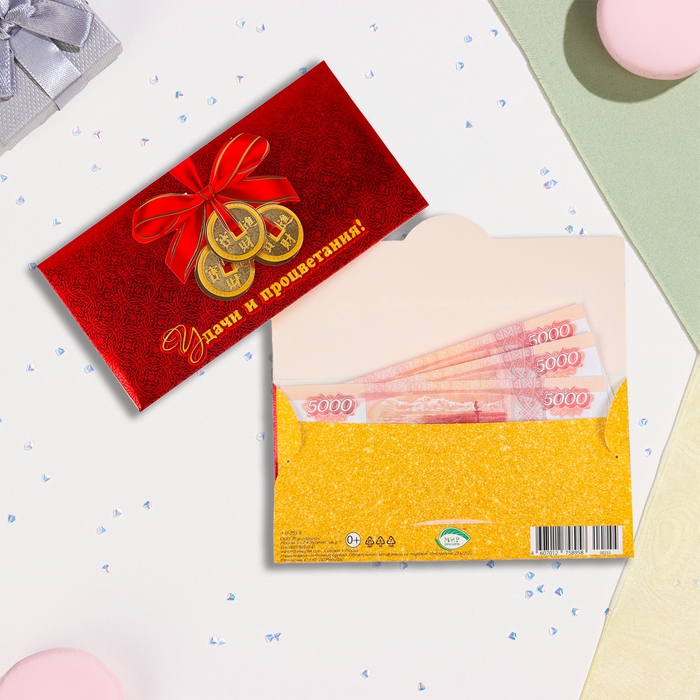 Конвер для денег "Удачи и процветания!" тиснение, золотые монеты, 16,5х8,5 см