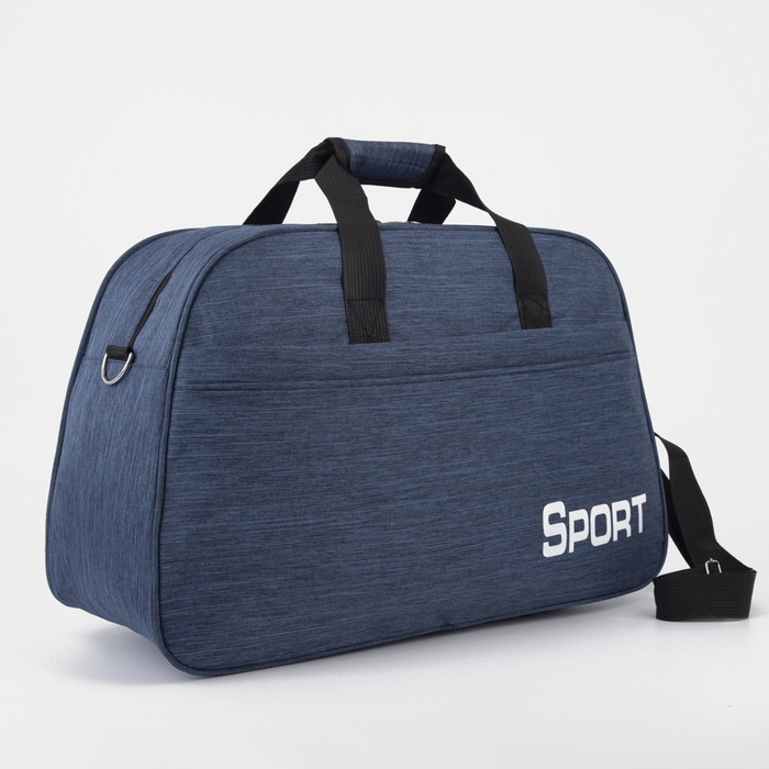 Сумка спортивная на молнии, наружный карман, длинный ремень, большой размер, цвет синий