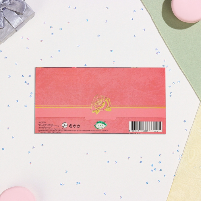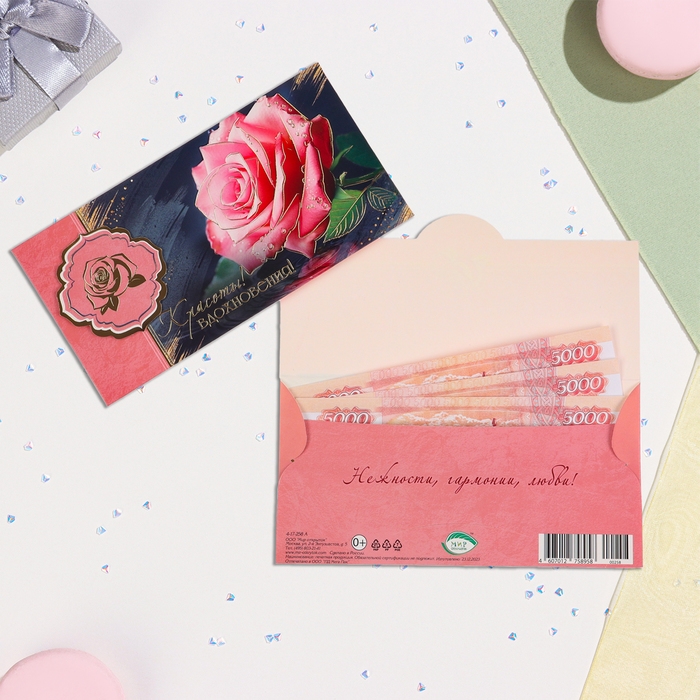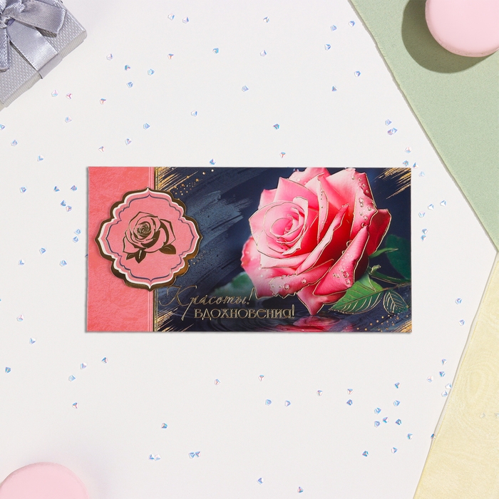 Конвер для денег "Красоты и вдохновения!" тиснение, роза, 16,5х8,5 см