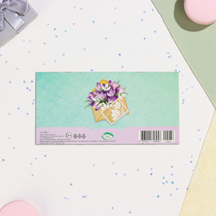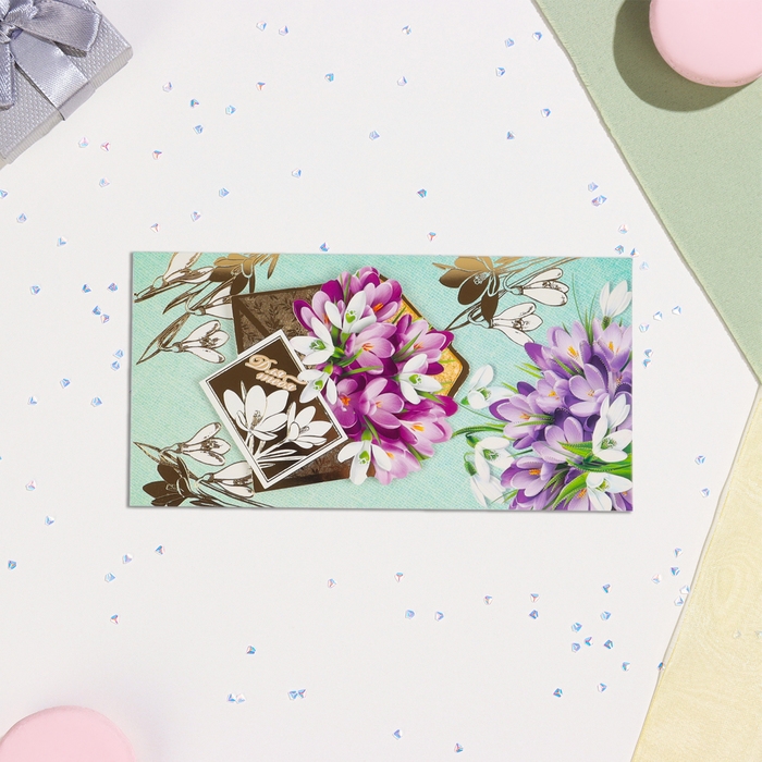 Конвер для денег "Для тебя!" тиснение, сирень в конверте, 16,5х8,5 см