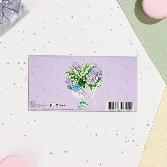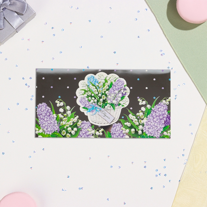 Конвер для денег "С 8 Марта!" тиснение, корзина с цветами, 16,5х8,5 см