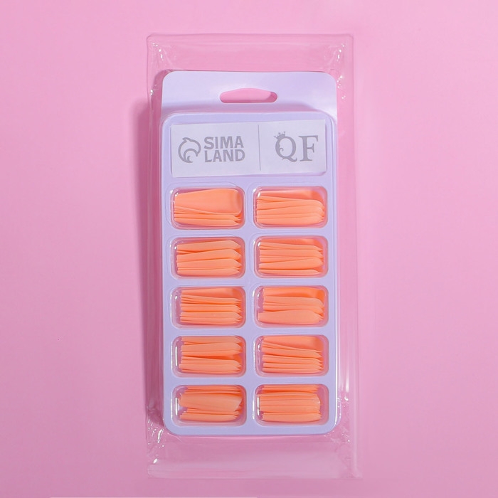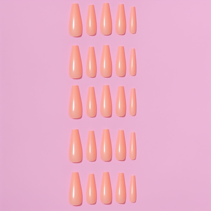 Накладные ногти, 100 шт, форма балерина, в контейнере, цвет персиковый