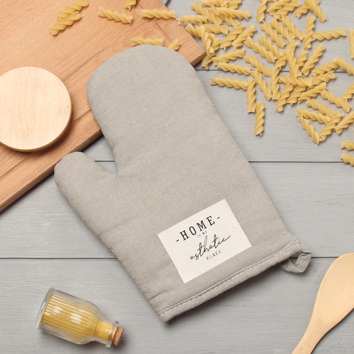 Варежка Этель "HOME", цвет серый, 26х16 см, 50%хл, 50%лен