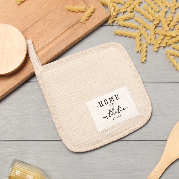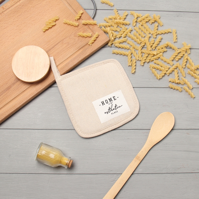 Прихватка Этель "HOME", цвет бежевый, 16х16 см, 50%хл, 50%лен