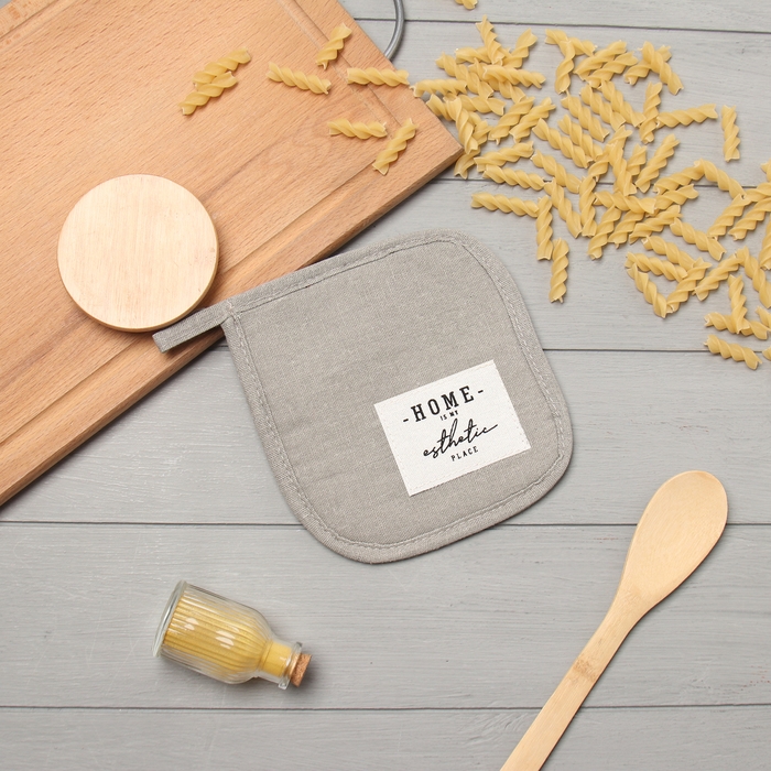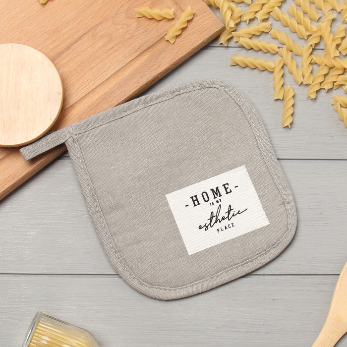 Прихватка Этель "HOME", цвет серый, 16х16 см, 50%хл, 50%лен