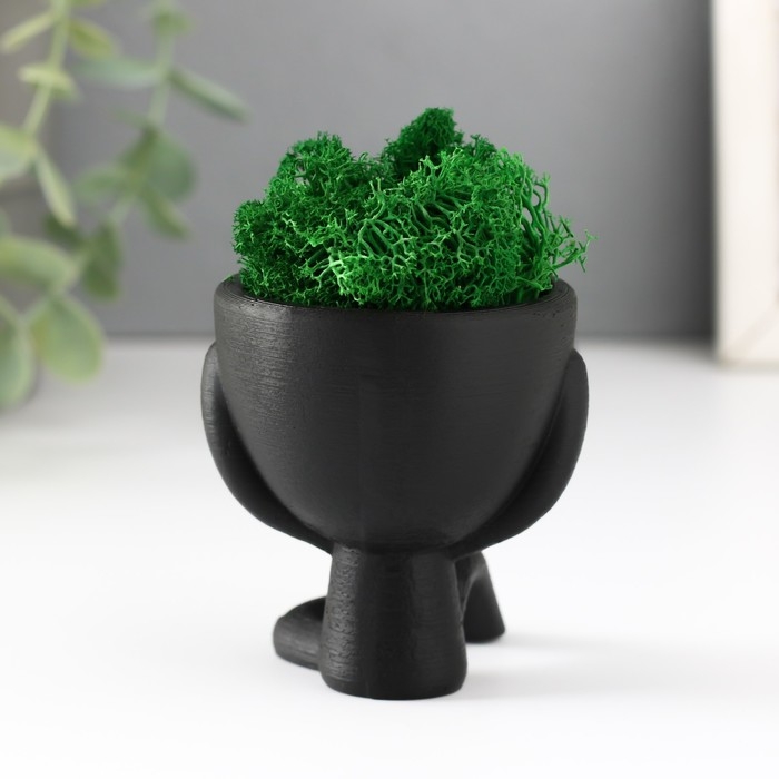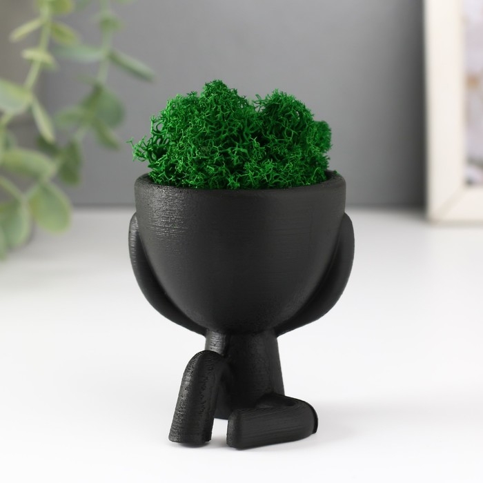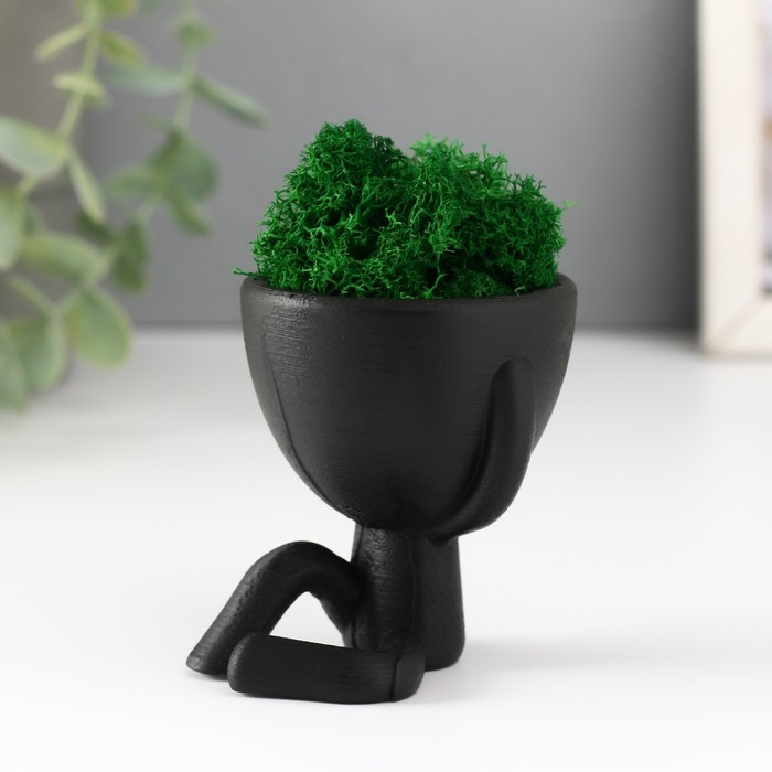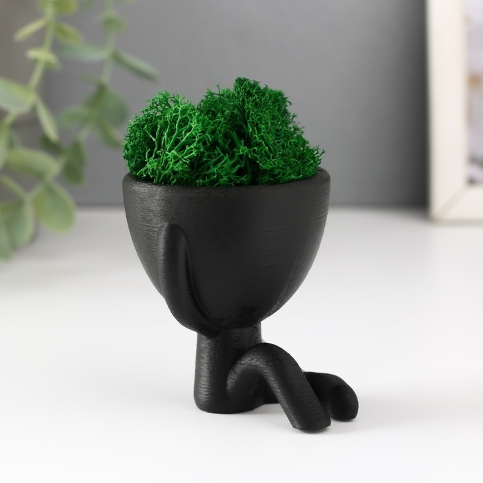 Кашпо бетонное мини "Мистер Грин" Ивадзару со мхом черный 5,5х6,5х6,5 см (мох зел стабил.)